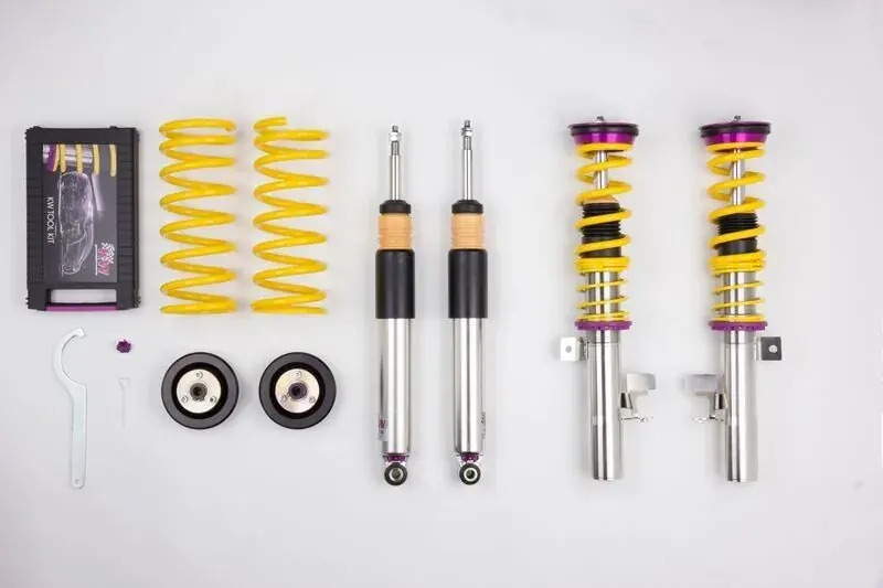 If you have already made your first performance modifications to your vehicle our KW coilovers Variant 3 will compliment your upgrades. The patented KW-valve technology for separate adjustment of rebound and compression damping allows you to individually setup your suspension.The adjustable KW bottom valve adjusts the low-speed range of the compression level in twelve clicks.