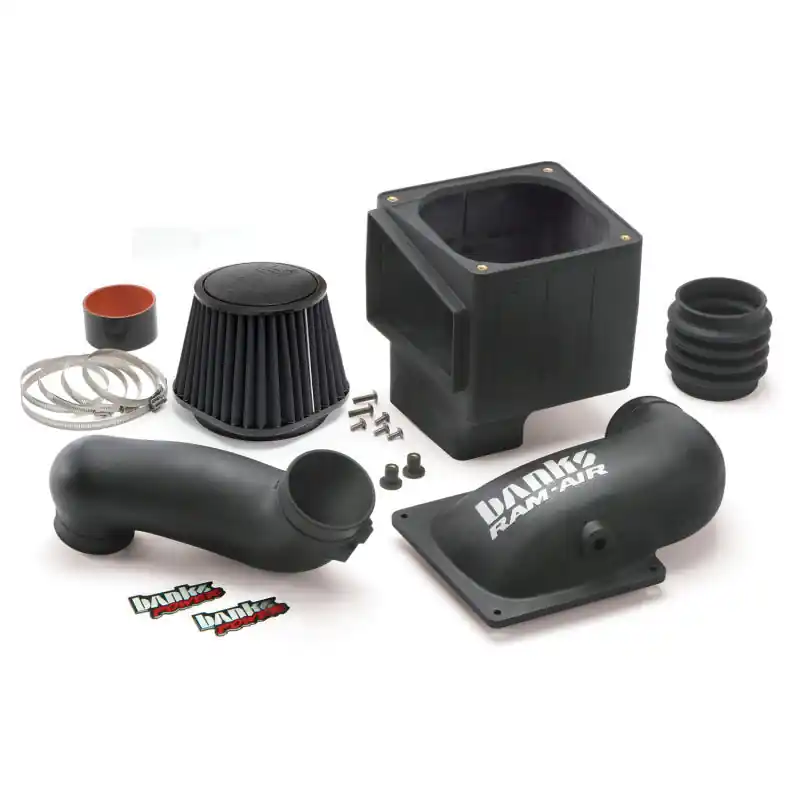 - Banks Ram-Air Superiority. Flowbench developed, dyno proven. Improves airflow up to 62%, Enclosed cold-air box with exclusive 4-1/2″ bellows to accommodate engine movement. Cooler temps, less smoke and more MPG. Banks’ revolutionary Ram-Air Intake System offers the reliability and durability of a factory intake yet delivers astonishing airflow. It flows up to 62% better than stock and outflows Volant and AIRAID, thanks in part to the Ram-Air’s huge filter area (fewer filter cleanings!), giant outlet, and the complete air filter housing with large side & bottom inlets. Banks Ram-Air collects & directs more power-producing cool, dense air to the engine, lowering EGTs and smoke and improving fuel economy, too! The cotton gauze filter traps the most dirt and debris. And Ram-Air is the only aftermarket intake with 4-1/2″ bellows to accommodate engine movement. This prevents component damage and promotes reliable service life.Key Features: Enclosed housing keeps out hot, power-robbing engine air. Reduces exhaust gas temps and sooty, black smoke. Inhales cooler outside air for more power & MPG. Extends service life and requires fewer cleanings. Outflows stock and competitors up to 62%. Giant filter maximizes high-flow filtration. Extensively tested & validated. 5-year Limited Warranty. DRY Air Filter Element. Exclusive 5 inch bellows