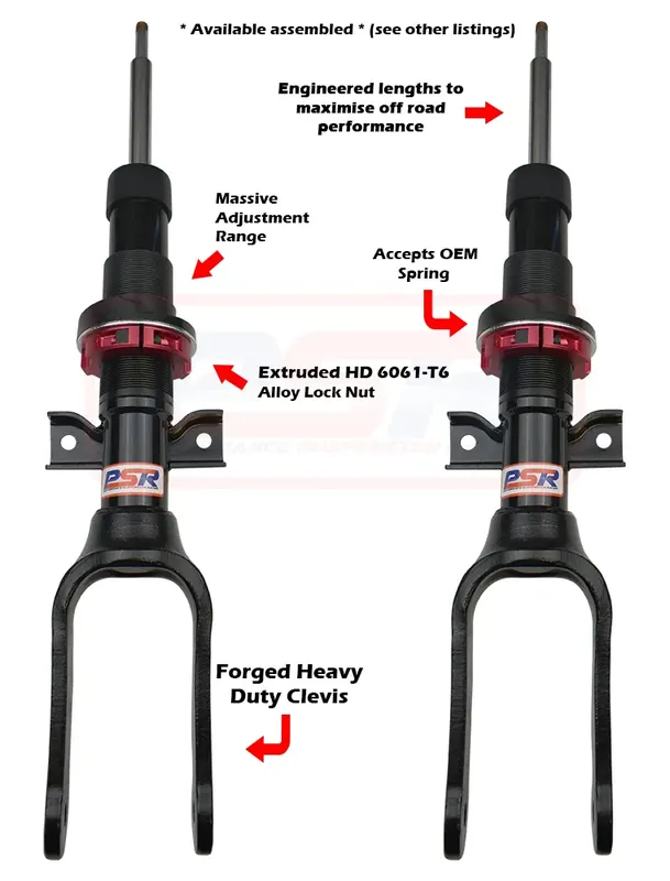 Most companies only evaluate things like shock valving and length BUT only redesign to suit their own construction style. At PSR we evaluate critical elements of the shock that make it worthy of fitment to your vehicle such as length and weaknesses within the suspension.