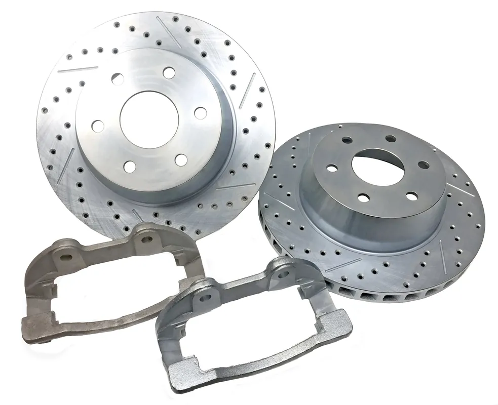 The Baer BIG Claw performance rotor upgrade is a simple, bolt-on kit that offers improved braking performance at the fraction of the cost of a big brake kit. The kit includes a pair of 1pc, larger than stock diameter rotors and caliper relocation brackets. The larger, purpose cast rotors feature added material in the fire path and a curved vane design for improved brake torque and better heat transfer/cooling to help reduce brake fade and provide a more consistent braking performance. Along with the improved brake performance, the BIG Claw rotors feature a slot, drilled and zinc-plated finish for improved appearance in large open center wheels. *** Because of the abundance of wheel companies and styles, it is impossible for Baer to guarantee fit of the Big Claw Rotors into a specific wheel. To verify fitment, we recommend using the template specific to the system you are interested in and compare it to the wheel of choice, including spare tire/wheel.***