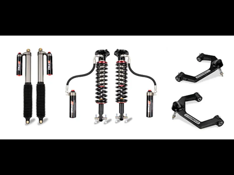 We have bundled everything you need in a leveling kit for your F-150 4WD with high quality Cognito components.There is no guesswork. Cognito components are engineered, manufactured, and assembled in the USA. The Cognito 2.5 Inch Performance Uniball Leveling Kit includes the Cognito Uniball SM Series Upper Control Arm Kit, Elka 2.0 Reservoir Coilovers and rear shocksThe Cognito Uniball SM Series Upper Control Arms add style, function and performance to your vehicle by correcting the uniball angle for lifted and leveled applications and improving the allowable droop travel for a better ride quality.The Elka 2.5 shocks feature Dual Speed Compression adjustment and provide better attenuation of vibration, leading to major noise reduction in the cabin (much less squeak and rattle), damping characteristics optimized for each truck and setup, providing a smoother ride. Increased comfort in both on road and off-road conditions, especially over washboard and square-edge impacts, more stable and more predictable handling, reduced front-end diving when cornering or braking reduced rear-end bucking and lifting, and increased damping and spring rate for better handling when towing or loading truck.