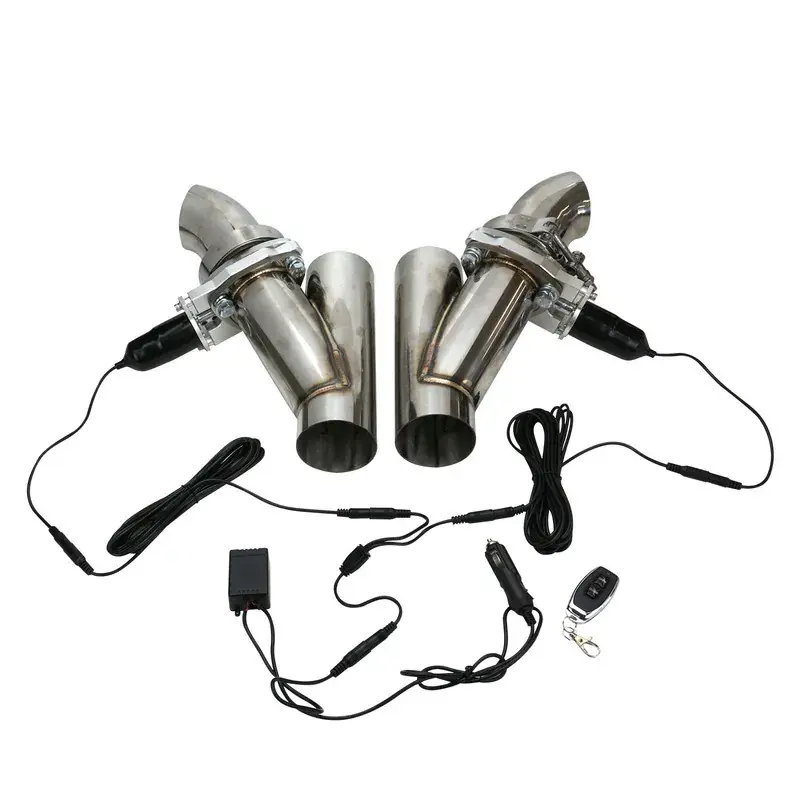 Proflow’s complete single or dual electric exhaust cut outs give you the best of both worlds – an OEM quality quiet sound for the street, or a wide-open race growl for the track. These kits are designed to be welded or clamped into an existing exhaust, and can be opened and closed from inside the vehicle with an included remote control switch. The remote controls both sides of the dual versions, or they can be wired independently of each other if necessary.