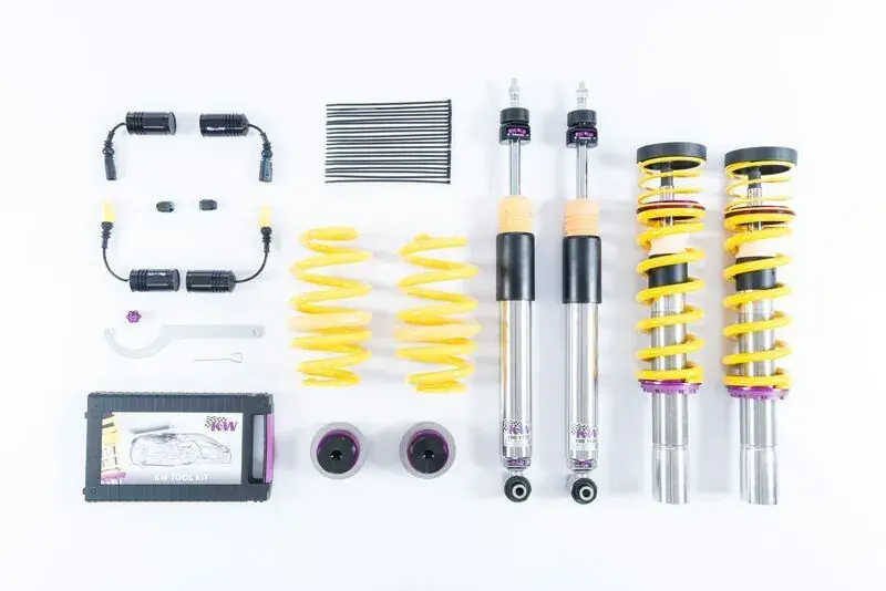 If you have already made your first performance modifications to your vehicle our KW coilovers Variant 3 will compliment your upgrades. The patented KW-valve technology for separate adjustment of rebound and compression damping allows you to individually setup your suspension.The adjustable KW bottom valve adjusts the low-speed range of the compression level in twelve clicks.