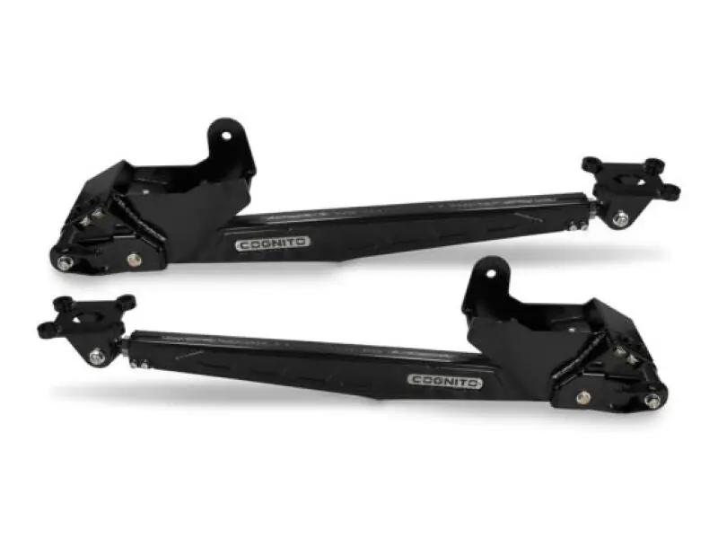 The Cognito SM Series LDG Traction Bar Kit features a heavy-duty boxed sheet metal construction with adjustability that enables you to control unwanted axle wrap without restricting suspension travel.The all-new Cognito SM Series Limited Dynamic Geometry (LDG) Traction Bars delivers class leading performance without sacrificing ride quality. Engineered with precision adjustability, the SM Series Traction Bars give you the ability to quickly and precisely adjust your traction bars to minimize dreaded axle-wrap without restricting suspension travel.The Cognito SM series heavy-duty (boxed Sheet Metal) construction and signature design, deliver both optimum performance and unique looks that will make your vehicle stand out in the crowd. Made in the USA.