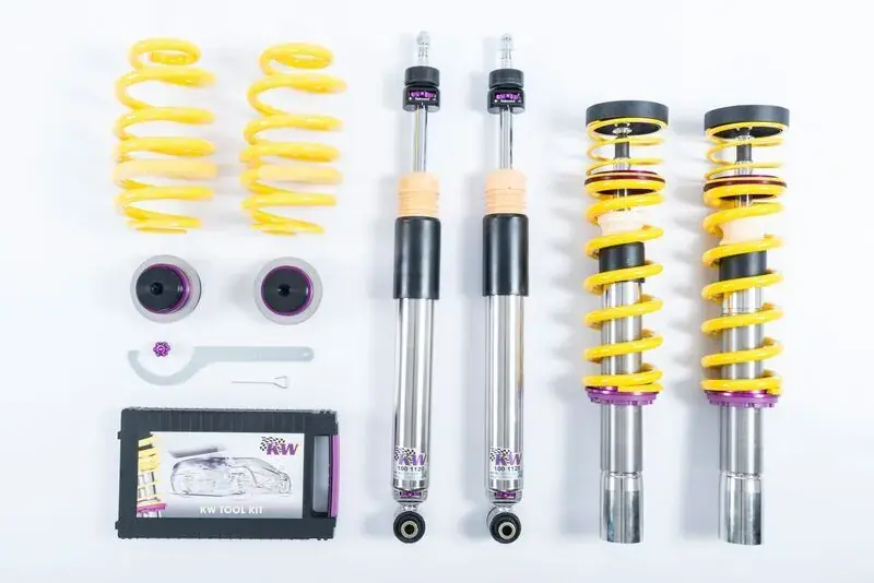 If you have already made your first performance modifications to your vehicle our KW coilovers Variant 3 will compliment your upgrades. The patented KW-valve technology for separate adjustment of rebound and compression damping allows you to individually setup your suspension.The adjustable KW bottom valve adjusts the low-speed range of the compression level in twelve clicks.