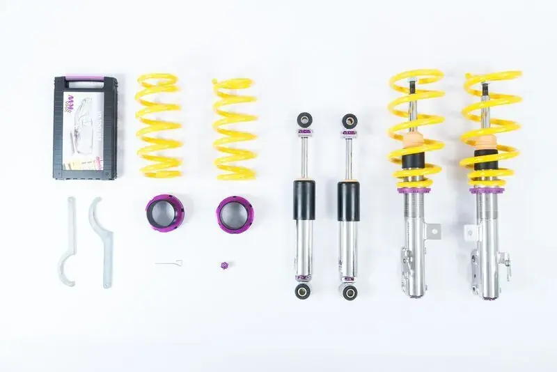 The KW coilover kit Variant 3 inox-line is the perfect accessory for performance-oriented drivers and tuning enthusiasts who put a great demand on their suspension. The separately rebound and compression damping adjustable dampers with their well-thought-through click adjustment allow a perfect setup. So it is easy to influence the steering behaviour, directional stability, tire grip and handling characteristics when driving on the limit.