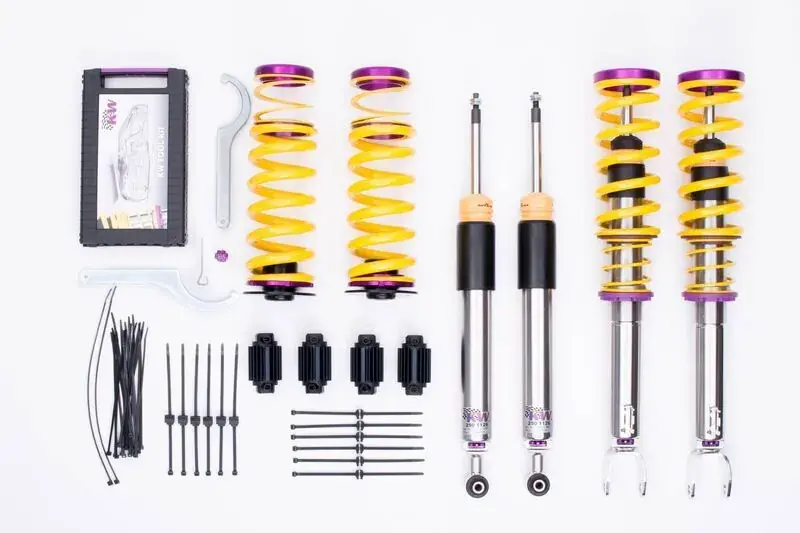 If you have already made your first performance modifications to your vehicle our KW coilovers Variant 3 will compliment your upgrades. The patented KW-valve technology for separate adjustment of rebound and compression damping allows you to individually setup your suspension.The adjustable KW bottom valve adjusts the low-speed range of the compression level in twelve clicks.