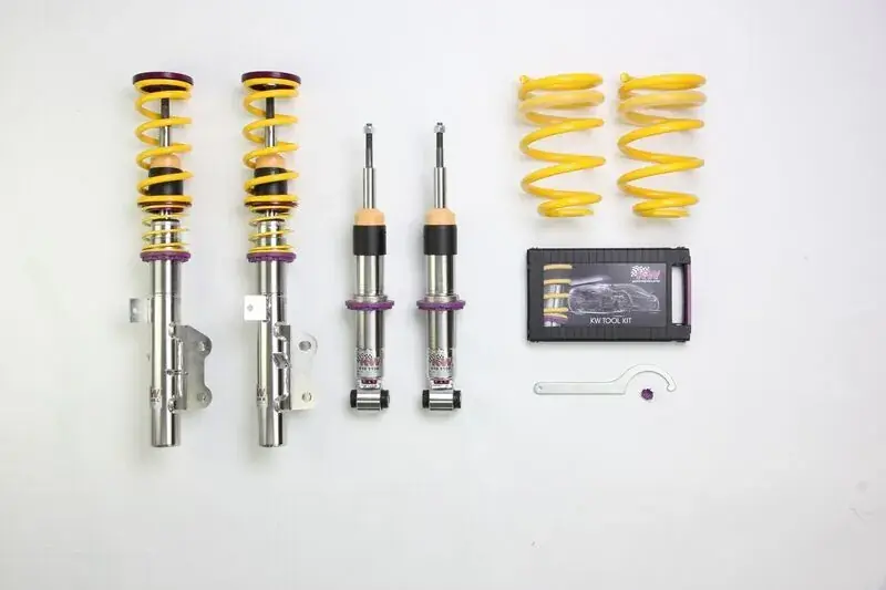 Similar to our racing coilovers from the KW Competition program, the KW coilovers Variant 3 inox-line can be adjusted independently in compression and rebound damping. This individual adjustment possibility is much appreciated by sports car manufacturers, tuners and drivers worldwide.