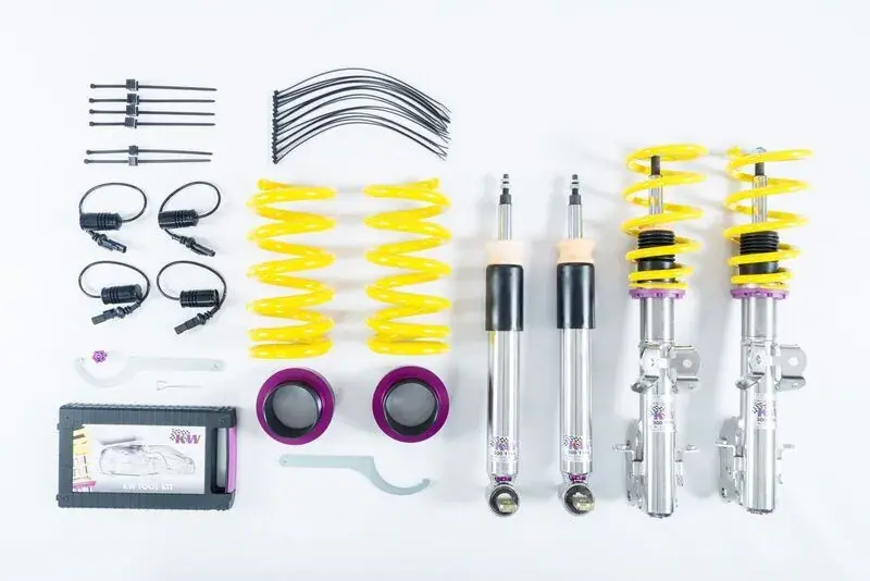 If you have already made your first performance modifications to your vehicle our KW coilovers Variant 3 will compliment your upgrades. The patented KW-valve technology for separate adjustment of rebound and compression damping allows you to individually setup your suspension.The adjustable KW bottom valve adjusts the low-speed range of the compression level in twelve clicks.