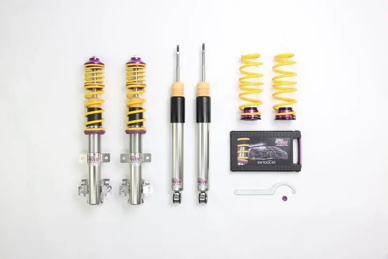 The KW coilover kit Variant 3 inox-line is the perfect accessory for performance-oriented drivers and tuning enthusiasts who put a great demand on their suspension. The separately rebound and compression damping adjustable dampers with their well-thought-through click adjustment allow a perfect setup. So it is easy to influence the steering behaviour, directional stability, tire grip and handling characteristics when driving on the limit.