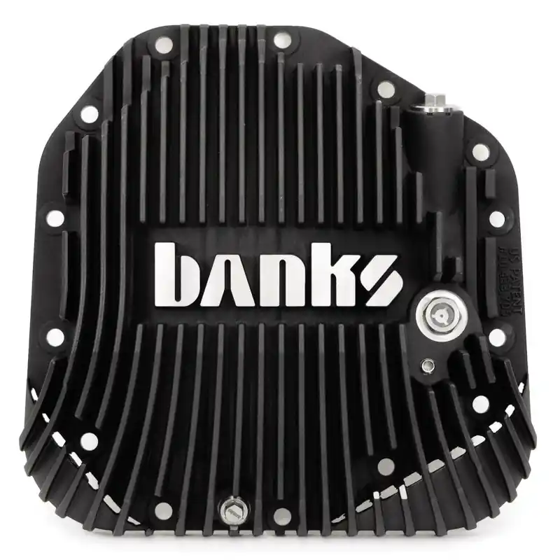 - Banks Ram-Air® differential cover extends lubrication life and retains fuel economy. Thanks to its superior fluid and aerodynamics, the Ram-Air® Cover out-performs stock and flat-back high-capacity covers and does so with less lubricant. Increased distance between service intervals and less lubricant means you’ll save money while extending gear life. When it comes to product development, we only make products that increase performance and beat the competition. So when we tested the popular Diff Covers on the market, we were shocked to find out that they actually hurt performance. This lead to the development of something so New and Incredible that our performance design has a United States Patent.Look, when we set out to build a product for your vehicle, we only engineer the best. What else would you expect from a company with a winning legacy that spans decades. We are here to win, and we just did (AGAIN) in a huge way.Ground Clearance. Our patented Ram-Air scoops are designed to increase airflow over the rear differential without sacrificing ground clearance. In fact, our differential cover retains the same low point as factory and competitors.Key Highlights: New patented design features Ram-Air scoops for fastest cooling. Provides cold high velocity air, overcoming “dead air zone” behind differential. Scoops force air up and into massive heat radiation fins. Engineered to break-away if snagged on an obstacle. Banks cools 5X better than flat-back covers in on-road towing tests over the same road, same weather, operator and vehicle. Cools 118% better than flat-backs in 200hp 60mph sustained tests. Dry-mount high-pressure silicone O-ring seal. No messy RTV clean! Internal fins transfer heat through the cover into the external fins. Clears spare tire heat shield, Panhard bars and other components. Does not sacrifice any ground clearance. Limited Lifetime Warranty