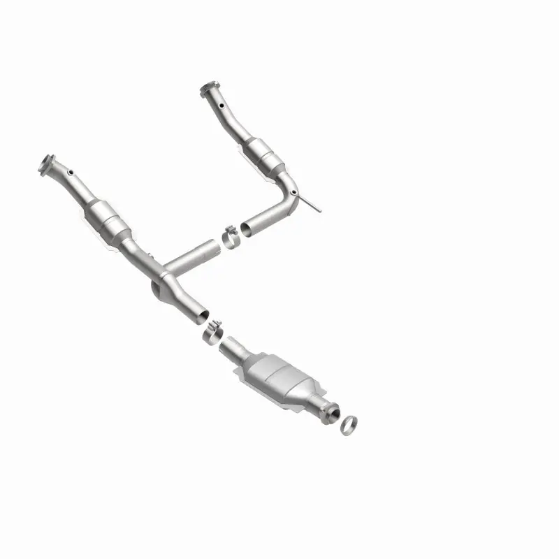 - Keep the check engine light off with MagnaFlow HM Grade Federal/EPA Compliant Direct-Fit Catalytic Converter 93108. With features including free-flowing mandrel-bent tubing and highly corrosion resistant stainless steel construction, easily install this spun body converter yourself using the proper tools, no cutting or welding required. MagnaFlow’s state-of-the-art metrology department uses the latest 3D scanning systems during research and development, so you can be confident that your new part will fit and function like the original equipment. By replicating the OE spun body design, the single laser fusion weld greatly reduces the possibility of a leak, and our compact, low-mass design also allows for greater thermal efficiency. Designed to fit the 2002-2005 Ford Explorer, 2003-2005 Lincoln Aviator, and more, this direct-fit catalytic converter also interchanges with OE part 2C5Z-5F250-AA. The included gaskets & hardware reduce the possibility of a leaking seal while avoiding the need to reuse corroded factory parts for installation. This replacement part is designed to meet or exceed Federal emissions requirements set forth by the EPA, complying with legal standards for OBDII Federally registered vehicles with Federal/EPA Emission systems.