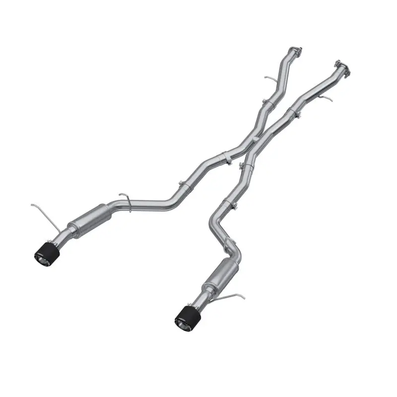- 3in. Cat-Back. Dual Rear Exit. T304 Stainless Steel. Carbon Fiber Tips.