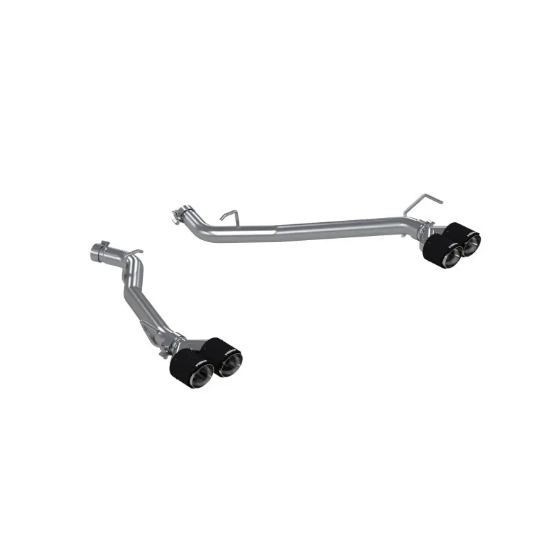 - 2.5in. Axle-Back. Dual Rear Exit. T304 Stainless Steel. Quad Carbon Fiber Tips.