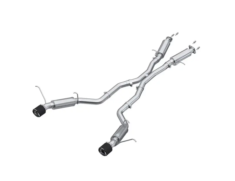 - 3in. Cat-Back. Dual Split Rear Exit. T304 Stainless Steel with Carbon Fiber Tips.