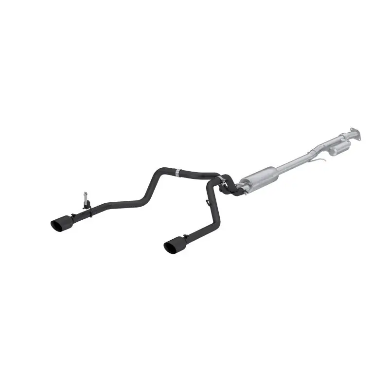 - 3in. Cat-Back. 2.5in Dual Rear Exit. Black-Coated Aluminized Steel.