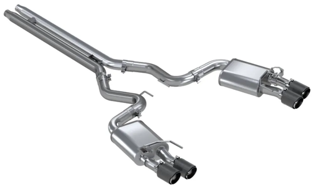 The Ford Mustang GT exhaust tips come in T304 stainless steel with a Carbon Fiber shell and MBRP logo centered on top for each tip. This is really the cherry on top for this Cat-back Dual Quad Split rear exit performance exhaust system and blends in with rear bumper perfectly. Ford® and Mustang enthusiasts should consider this exhaust system based on quality and overall sound upgrade that matches the race design of the Ford Mustang GT.