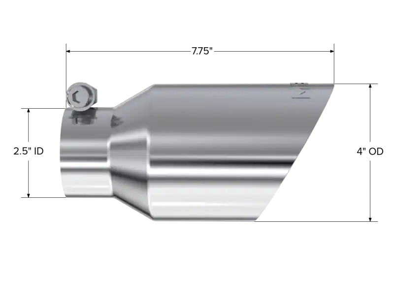 - Armor Pro Exhaust Tip; 2.5 in. Inlet Diameter; 4 in. Outlet Diameter; 8 in. Length; Dual Wall; Angled; T304 Stainless Steel; Mirror Polished;