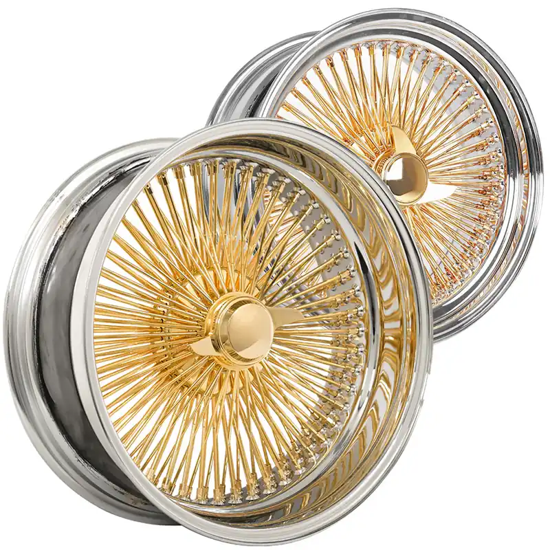 Mega Sale 20×8″ LA Wire Wheels Staggered Standard/Reverse 150-Spoke Straight Lace American Gold Plating Center with Chrome Lip Rims