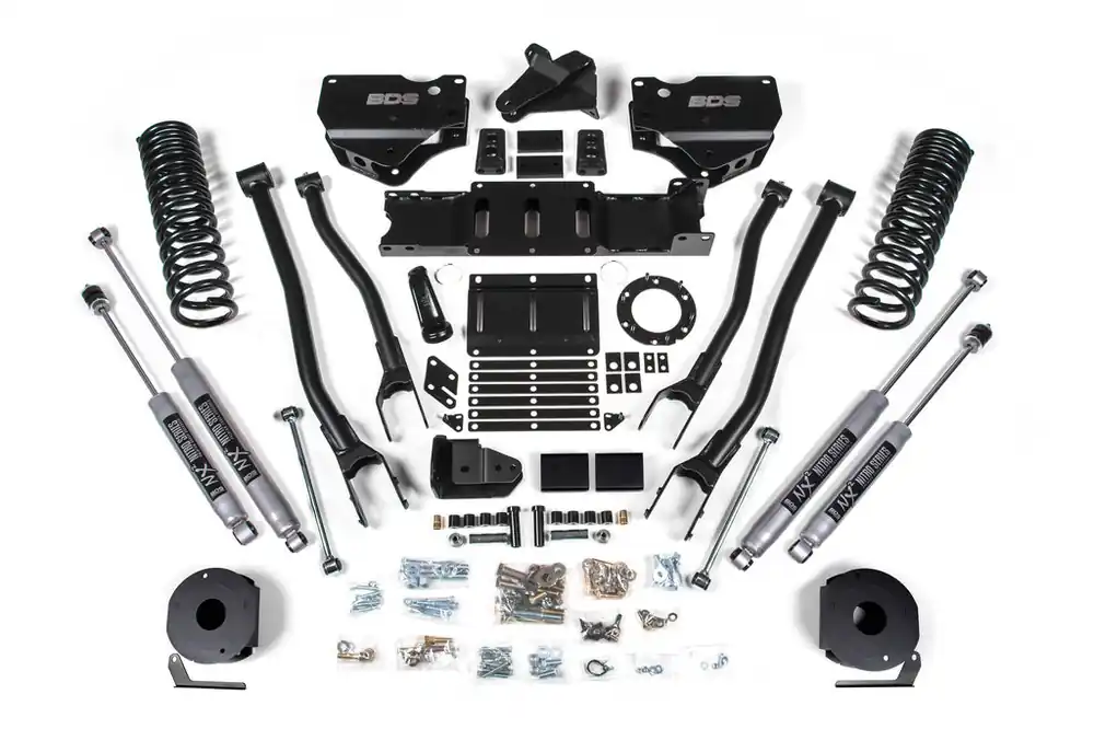 Built to outperform, BDS Suspension engineered a 4-inch lift kit with 4-Link conversion for your 2019-2024 RAM 2500 gas powered truck that will surely impress. Designed to improve stance, performance, and capability, this kit includes everything necessary to set your truck up right with clearance for up to 35″ tires.