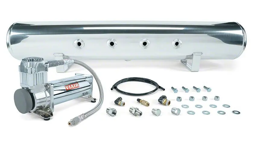Built to Last With a Show-Quality Finish. The chrome-plated aluminum tank resists rust and adds a clean, premium look to your trunk or bed mount. The Viair compressor runs quietly and features thermal overload protection to prevent damage during long fills. It’s a trusted solution for air ride builds and utility setups alike.