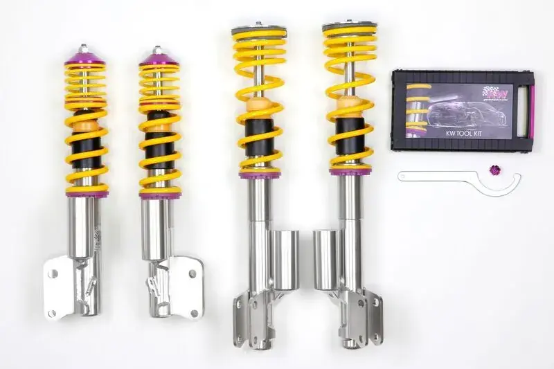 Similar to our racing coilovers from the KW Competition program, the KW coilovers Variant 3 inox-line can be adjusted independently in compression and rebound damping. This individual adjustment possibility is much appreciated by sports car manufacturers, tuners and drivers worldwide.