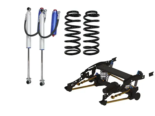 This kit is supplied with everything you need to convert your vehicle from leaves to coils except the coils and shocks, this allows you to run your own selection of coils or shocks.