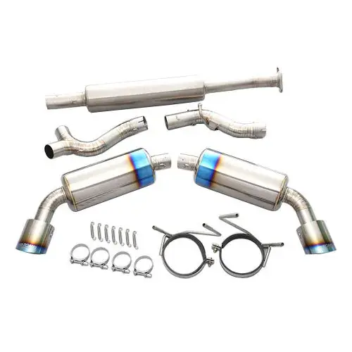 This all new Ti RACING 86/BRZ exhaust system has been designed to improve the performance at all RPM range from low to mid, and then smoothly shift to high RPM range reducing the well-known the mid range hesitation. Sub muffler in the main pipe, then split into 2 after axle and 2 mufflers in both side. This structure helps reducing the sound while maximizing the performance. Front spherical flange fits the stock front pipe and any other aftermarket front pipe with the spherical style flange.